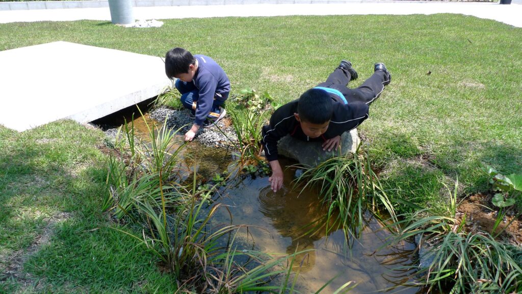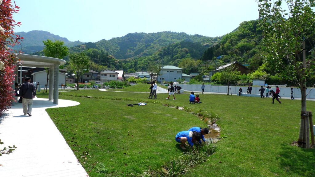 まちづくり交付金を活用した本整備事業では、公園の設計から完成までの過程で児童と住民(大人)が世代を超えて話し合うワークショップ(WS)が全6回開催された。施工時の園内の芝張りは千怒小学校の生徒達自らで行い、公園の竣工式には十年前、保護活動に携わっていた、かつての小学生も集い、めだかの放流が行われた。