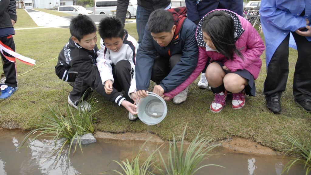 完成式典の様子は県内の全テレビ局、新聞等が取り上げ、めだか観察や湧水遊びを契機とする親子のコミュニケーション、さらに地域の継続した保護活動が現実の公園の形に実を結んだものとして広く報じられることとなった。