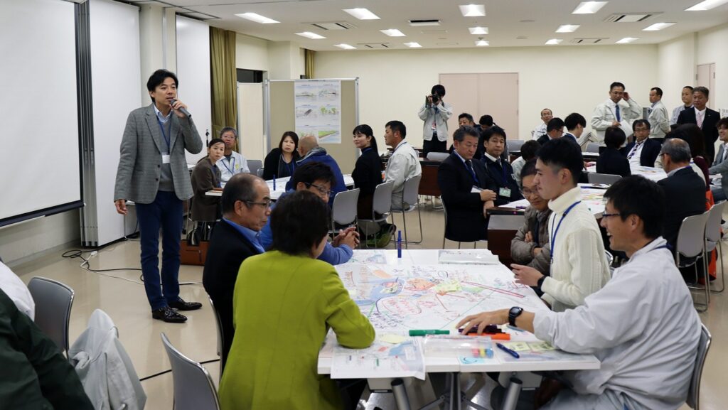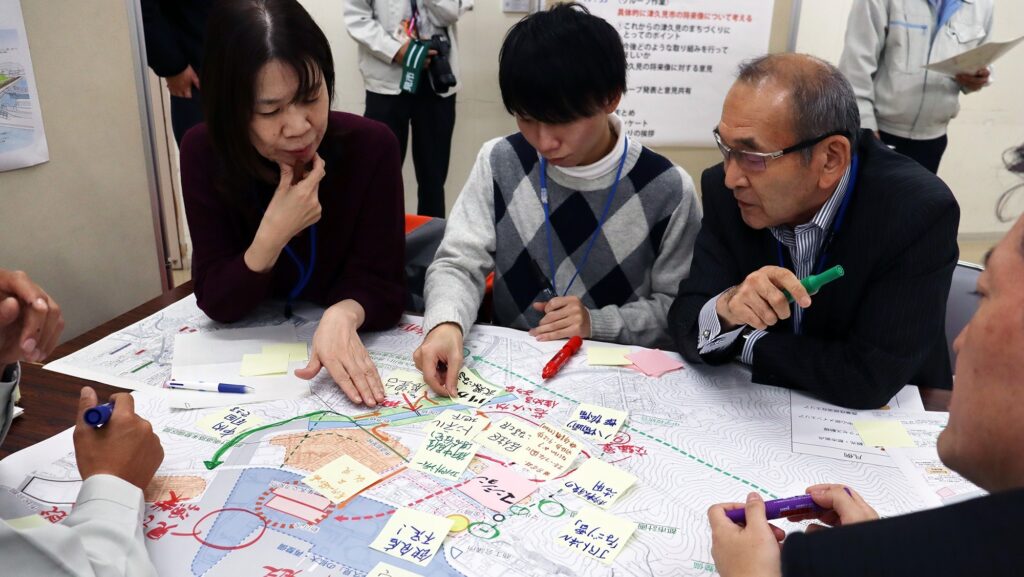 現況・課題の整理、全体構想・地域別構想まとめはもちろんだが、改訂では特に、実現化方策の項目において、達成される可能性が高い方策の実現プロセスの具体的整理を試みた。また具体的な方策を掲げるにあたり、地域住民の意向を十分に反映させることが必要不可欠と考え、3章 地域別構想でエリア分けした地区ごとに、地区役員や、地域でまちづくり、防災、伝統芸能、文化・スポーツなどに積極的に取り組む住民の方々にご参加いただき、地域の特性、景観、防災、観光、住民まちづくり、公共交通などについてWSでのヒアリングおよび意見交換を行った。
