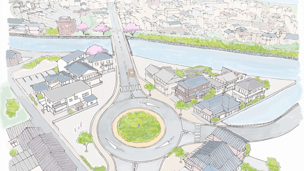 「グランドデザイン構想」は、市中心部において今後10年以内に取り組むべき事業を整理し、活性化に資するまちづくりのハード・ソフト両事業の将来ビジョン・イメージ図を作成したものである。H29年の台風災害を受け、まちの復興・再生事業の中にあった津久見市では、ダイアグラムや将来イメージ図を用いた「見える化」によるまちの積極的な将来像の共有が重要な作業であった。ビジョンの共有は被災後のまちづくりに対する市民意識を向上させ、復興への期待と市外への移転抑制に寄与したものと考えられる。