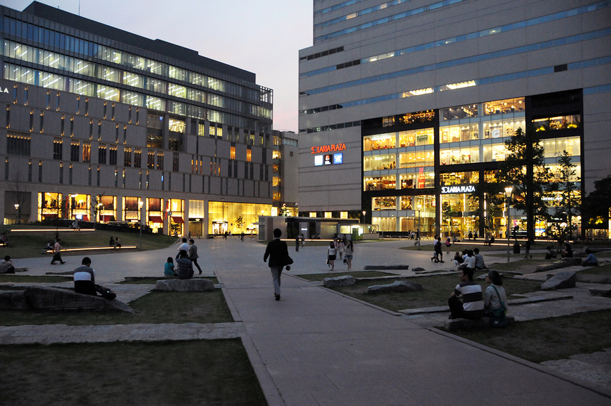 ①築山を撤去し、新たに中央園路を設け、利用者の往来と見通しの向上を図った。②旧公園に対する市民の愛着に配慮し、改修前に多くの利用があった石のベンチは、園内全体の段差を無くしたうえで以前の形に再配置した。③演出照明を内蔵した石のベンチを円弧状に新設し、芝生内に入れ込むことで騒音となっていたスケボージャンプ等の迷惑行為を抑制させた。④園内の植栽配置を調整し、隣接するソラリアプラザ開口部との連続性を確保、さらに2階カフェや西鉄福岡駅ホームから園内が見通せるようにした。⑤南側通路において死角を形成していた公衆トイレを人目につきやすい公園東部に移設、さらに通路自体の線形を直線化し、見通し改善を図った。⑥中央広場を設置し、市民の活動場所として利用しやすい空間を目指した。⑦公園西側に上記石のベンチを配した小高い「みはらしの丘」を新設し、中央広場や園内全体の光景が楽しめる休憩スペースとした。